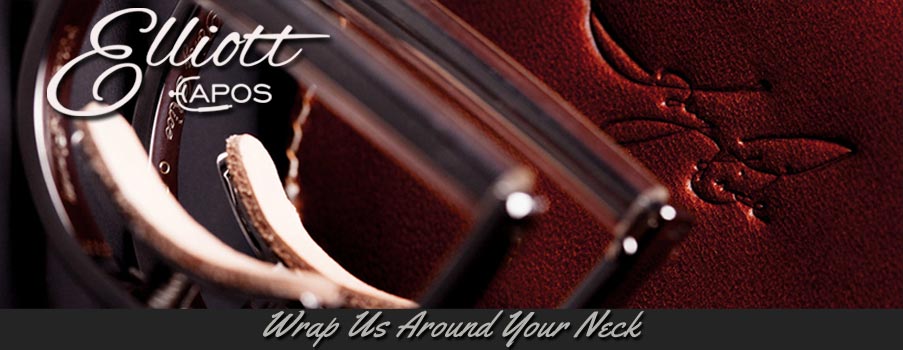 At Elliott Capos we make far more than just the “one size fits all” capo. Every Elliott capo is carefully hand-crafted from high quality stainless steel and features a unique self-centering saddle design that keeps the capo securely positioned in the center of your instrument neck and over the fret board. We use only genuine leather to pad the saddle seat and protect your instrument’s finish. All of our capos are studio quality and feature either a polished mirror or satin glow finish.